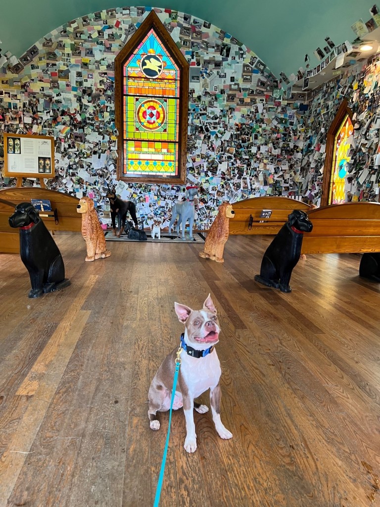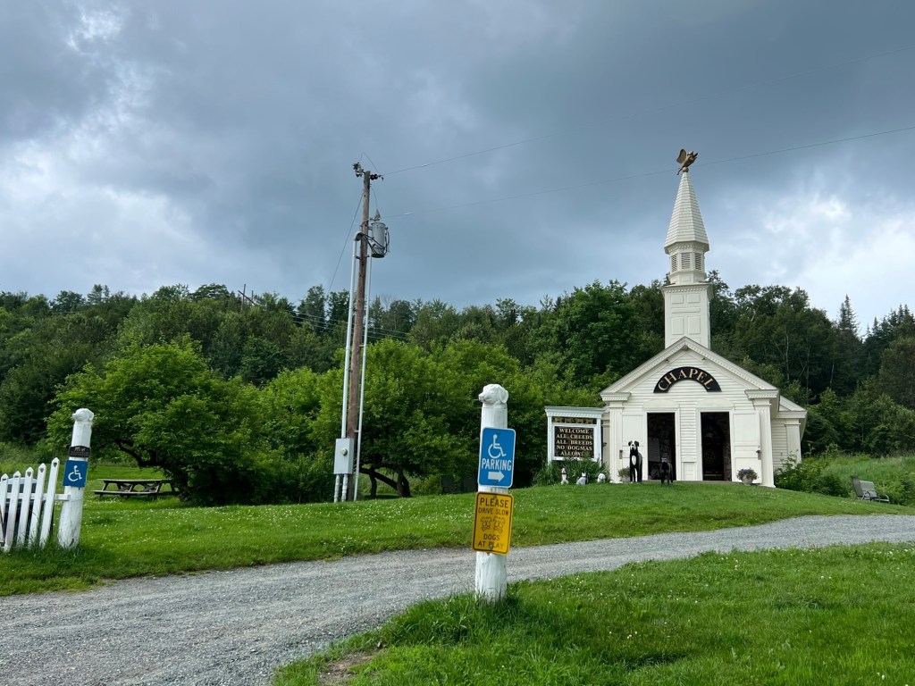 One of the days, we made a day trip to Dog Mountain in St. Johnsbury to visit the Dog Chapel and Stephen Huneck’s Art Gallery. Huneck designed and built the Dog Chapel as a tribute to human’s spiritual bond with dogs. Many leave messages and photos of their departed dogs in the Chapel, making it a place full of love and sadness. I guess it’s also fun to see who your dog is playing with over the rainbow bridge.