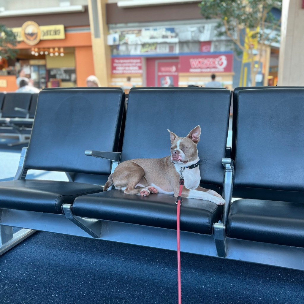 Our single flight to Burlington International Airport (BTV) was on a CRJ900 (9E). Nomii’s expanded carrier fitted perfectly below the seat in First Class and once the plane was in the air, I could open the expandable side of the bag and gave him more room to stretch out. However, he still chose to be curled up into a ball as he slept through the flight – that’s his preferred sleeping position 🙂