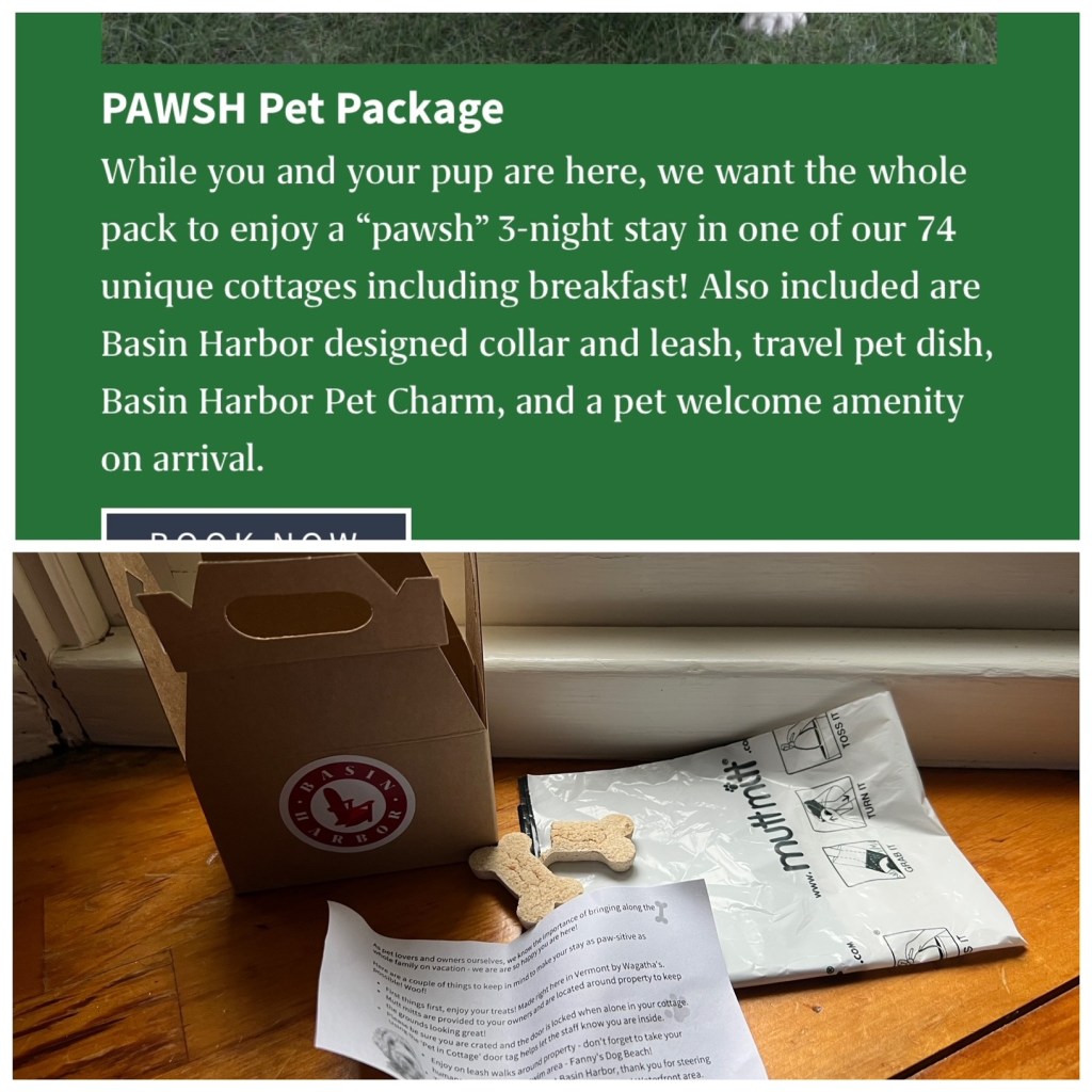 1. False advertising?? – I booked the Pawish package and the webpage says it comes with a bunch of trinkets including collar, leash, travel bowls, a charm, and amenities. At check-in, I was handed a small box containing 2 doggy biscuits, a poop bag and a piece of printed pet rules. There was nothing else in the cottage for my dog. The next day, I called Front Desk and described what I received, and the response from Greg was “That’s it!” Nothing riles me up like false advertising does so I emailed the concierge who handled my reservation and was told it was a misunderstanding. Someone came by to drop off the leash, collar, dog bowl and another little box with 4 doggy biscuits, another poop bag and 2 pieces of badly cut paper printed with the pet rules. No sign of the charm. Never mind. We don’t need another souvenir…but I wished the items were at least nicely presented in a bag or something and made to feel special.